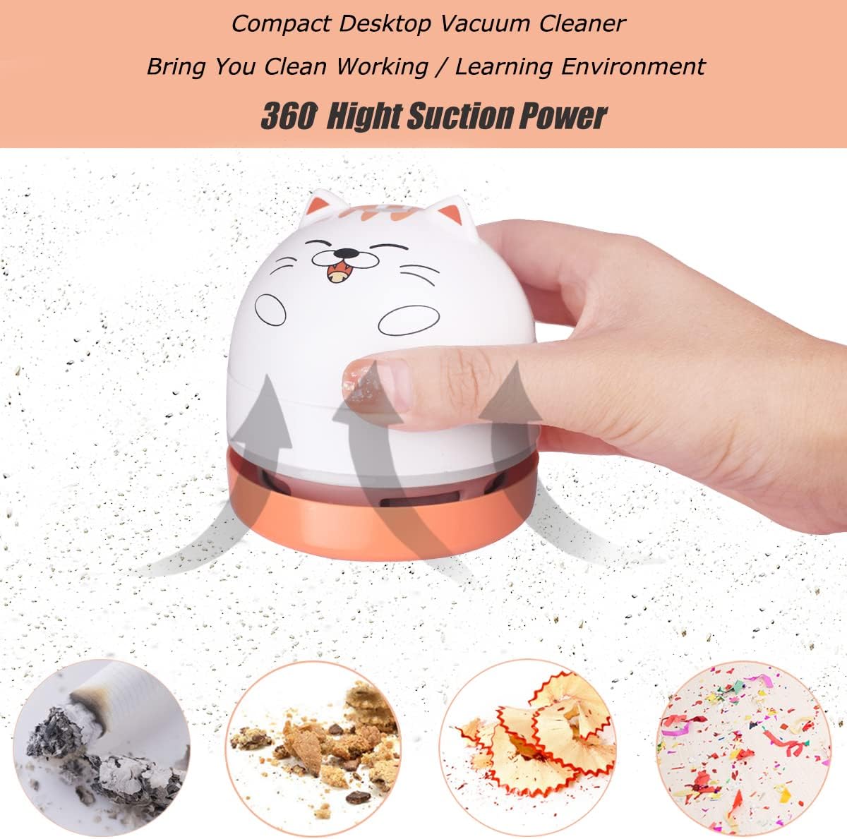 - 【MINI VACUUM CLEANER】 Small size is handy to clean carefully.Fashion cute cat mini desktop vacuum office keyboard desk dust cleaner mini cute office desk vacuum handy crumb sweeper.