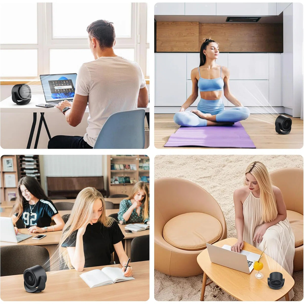 - Comfortable & Quiet Airflow: Our desk fan's brushless motor ensures whisper-quiet operation, ideal fan for offices or sleep. Its turbo design delivers a 360° airflow, max wind speed reaches 17.4ft/s for efficient yet gentle airflow
